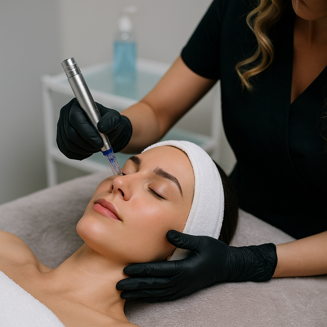 „Microneedling ist eine hochwirksame Behandlung zur Regeneration und Verjüngung der Haut. Durch feine, kontrollierte Mikrokanäle werden die Kollagen- und Elastinproduktion angeregt, wodurch die Haut glatter, straffer und ebenmäßiger wird. Ideal zur Reduktion von Aknenarben, Poren, Pigmentflecken und ersten Fältchen. Für einen sichtbar frischen, strahlenden und verfeinerten Teint.“